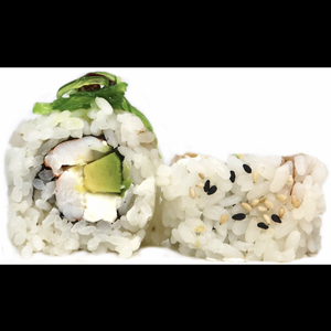 Roll da 8pezzi con gambero cotto,avocado,Philadelphia con sopra alghe wakame