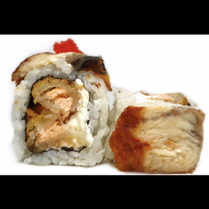 Roll da 8pezzi a base di salmone fritto e Philadelphia ricoperto da un stratto di anguilla e ricoperto dal tobiko e salsa teriyaki